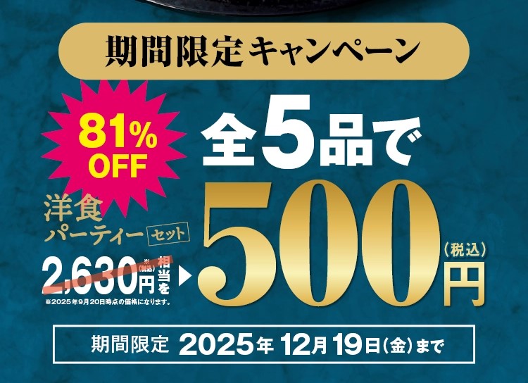 食品宅配サービス「コープデリ」では、2025年9月20日から12月19日までの期間限定で、「洋食Partyセット」の500円お試しキャンペーンを実施しています。通常価格2,630円(税込)相当のセットが、約81%OFFの500円(税込)で購入できるお得な企画です。